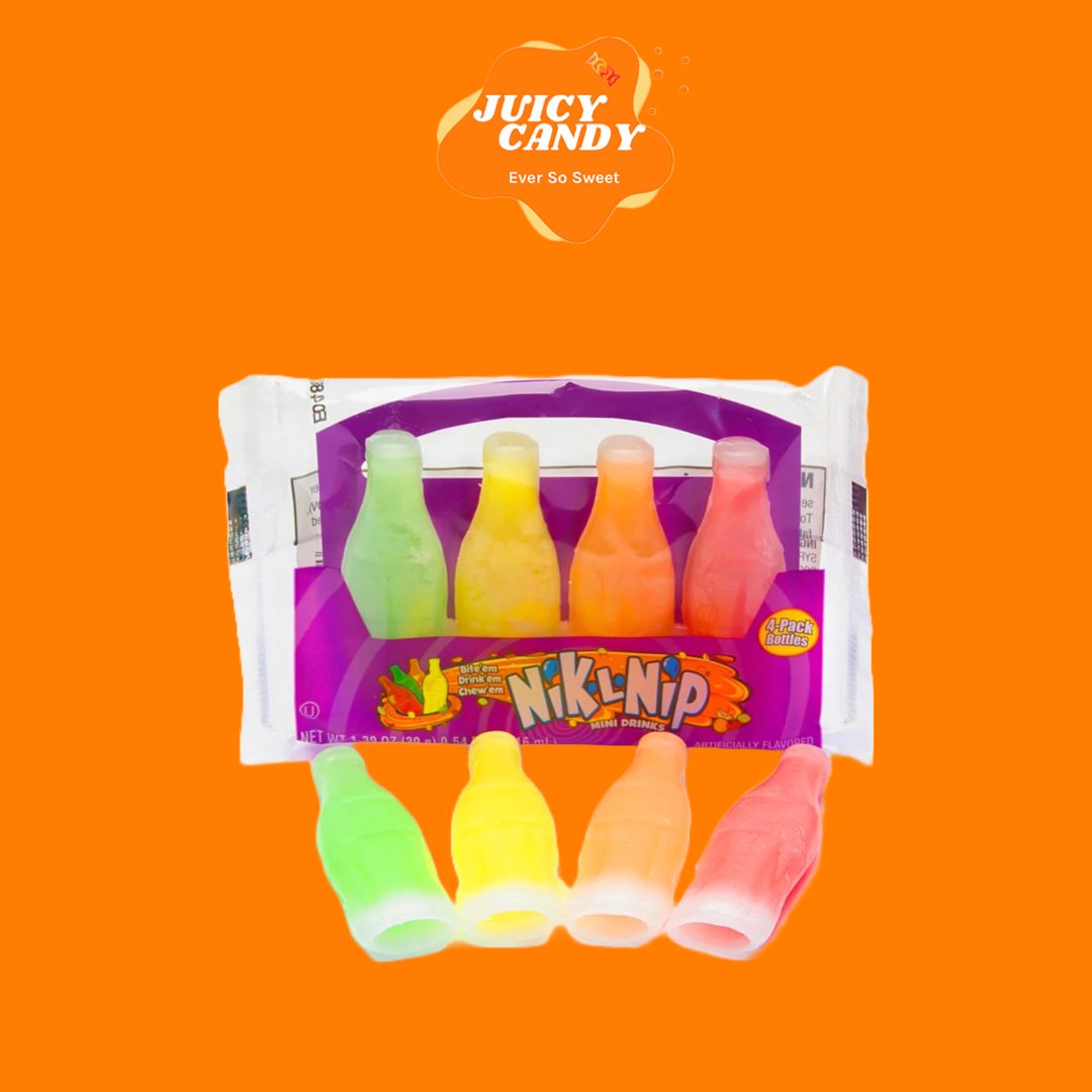 Nik-L-Nip is a brand of confectionery that comes in a variety of fruit flavours. The Nik-L-Nip name is a combination of the original cost (a nickel) and the preferred method of opening wax bottles, which is to nip or bite the top off.